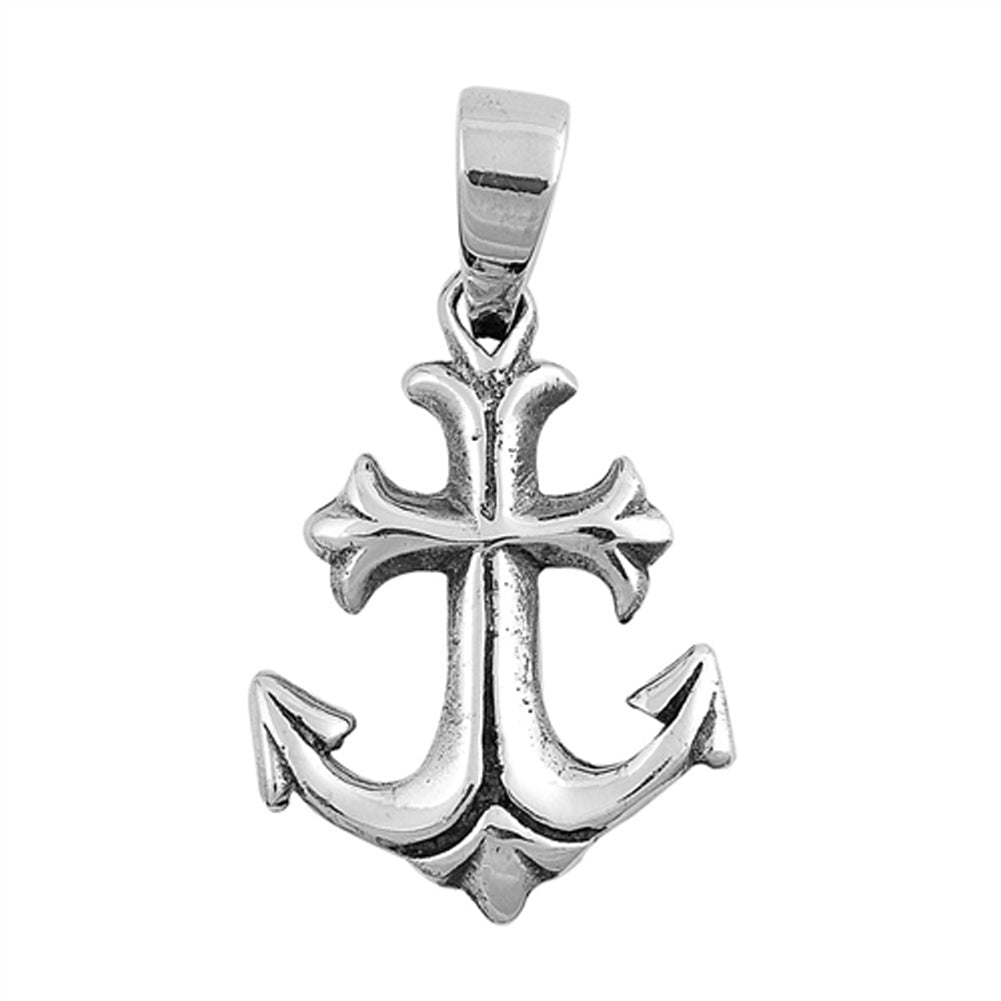 Budded Anchor Cross Pendant .925 Sterling Silver Vintage Detailed Sailor Charm