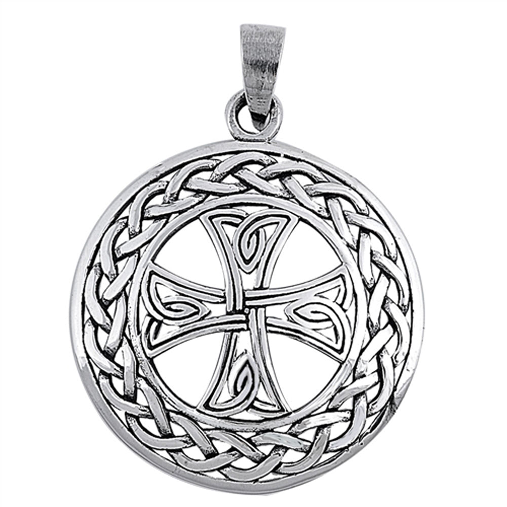 Knot Celtic Cross Medallion Pendant .925 Sterling Silver Weave Twist Braid Charm
