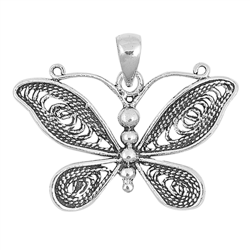 Sterling Silver Rope Twist Butterfly Pendant Wing Bali Bead Animal Nature Charm