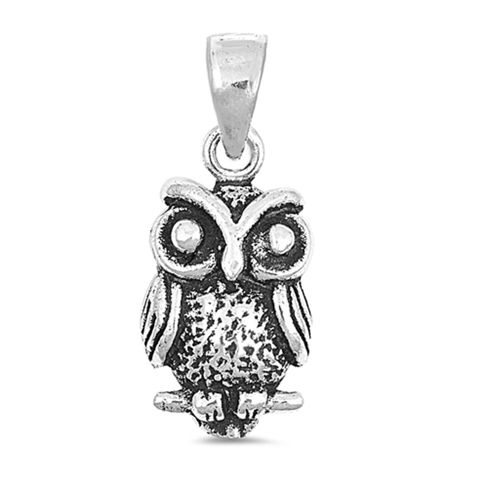 Sterling Silver Oxidized Owl Pendant Realistic Bird Animal Forest Creature Charm