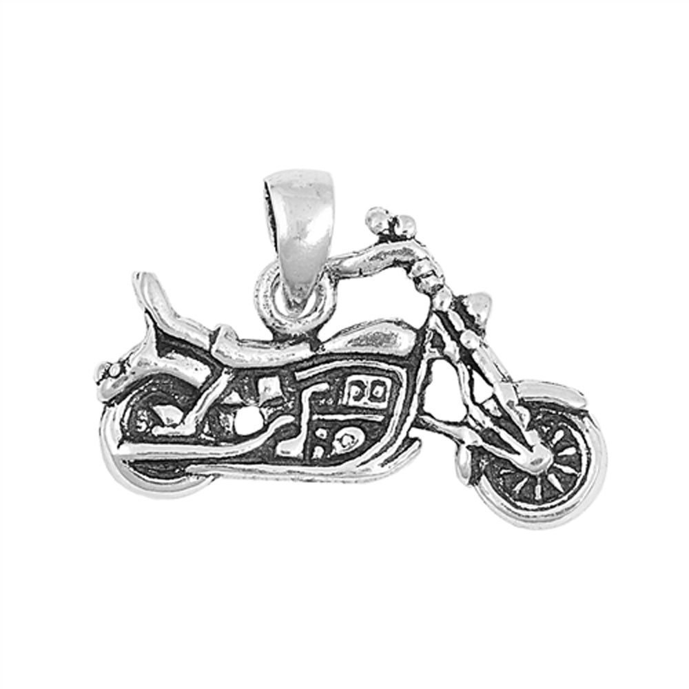 Sterling Silver Motorcycle Pendant Chopper Motor Bike Bicycle Street Charm 925