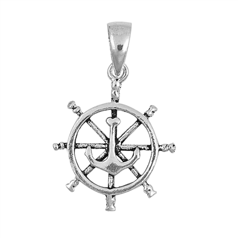 Sterling Silver Captain Wheel Pendant Anchor Sailboat Boating Nautical Charm 925