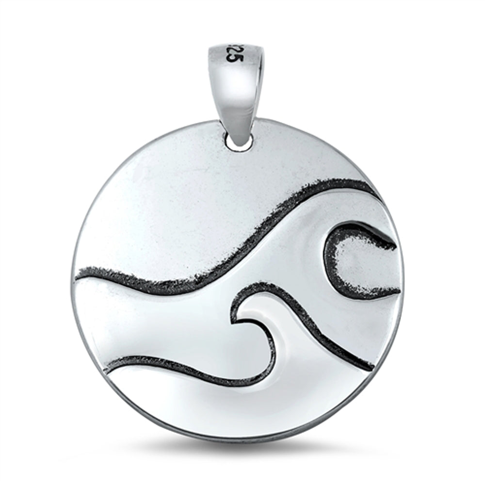 Sterling Silver Minimalist Wave Outline Pendant Simple Ocean Modern Charm 925