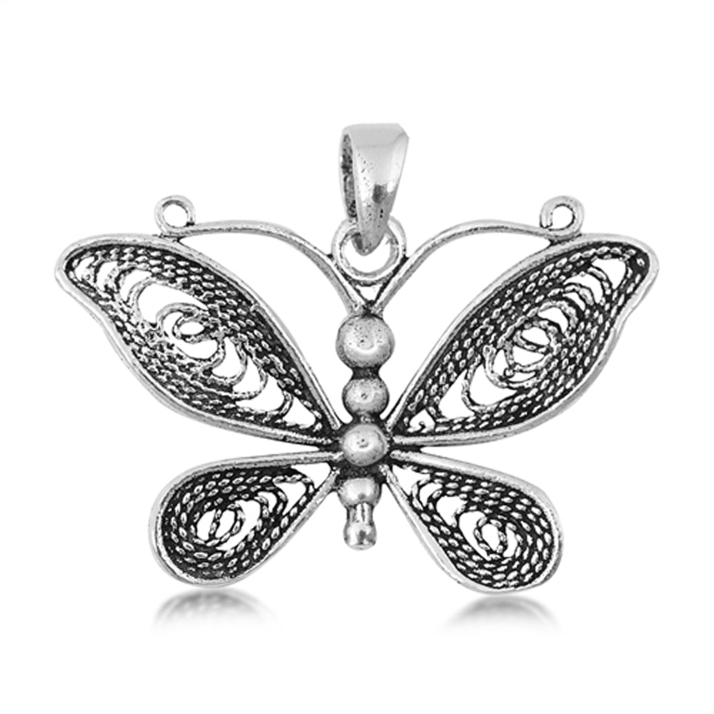Sterling Silver Rope Weave Butterfly Pendant Wing Ornate Unique Garden Charm 925