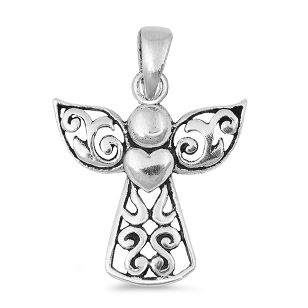Sterling Silver Cute Angel Pendant Promise Heart Cutout Filigree Swirl Charm 925