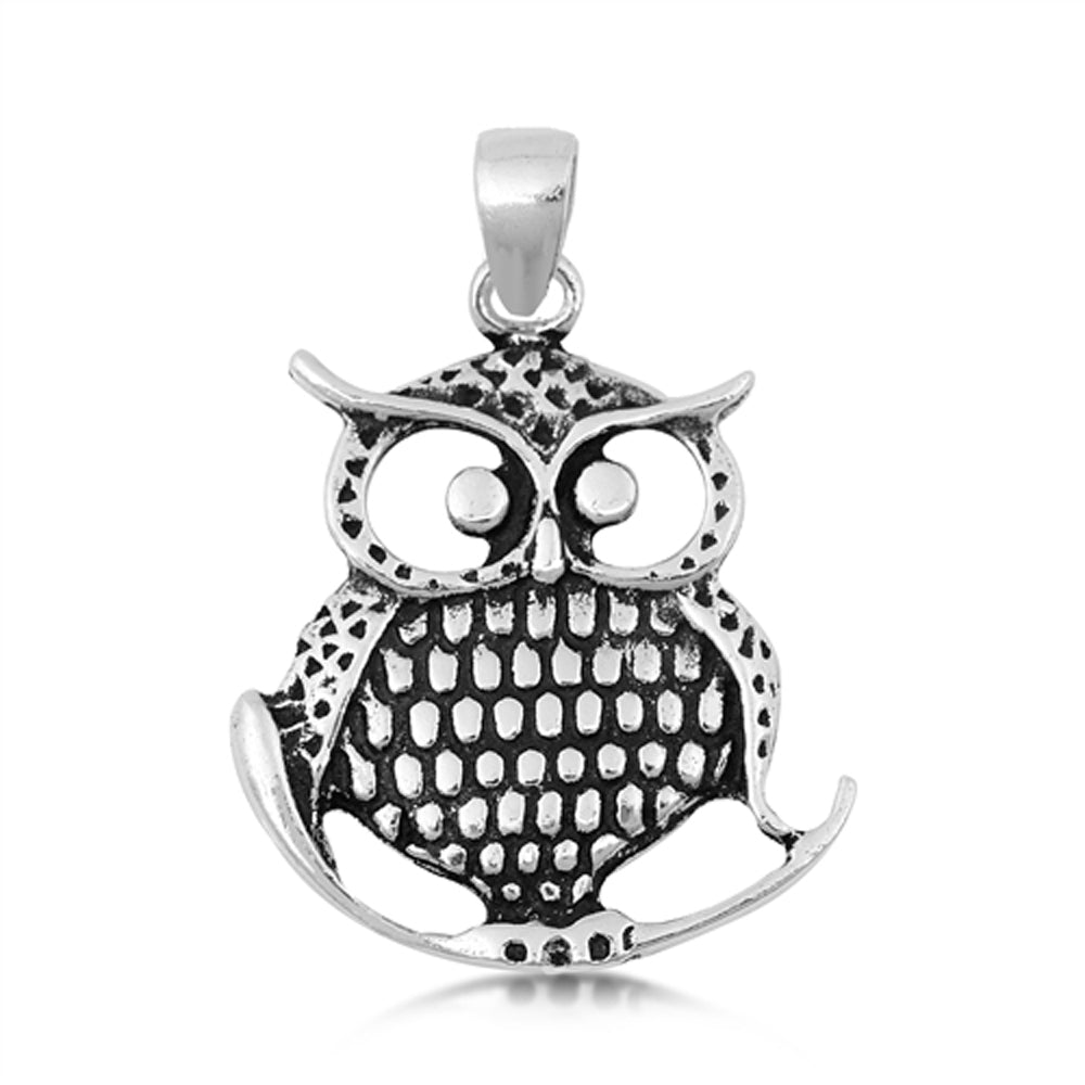 Sterling Silver Cute Owl Pendant Detailed Feather Animal Bird Woodland Charm 925