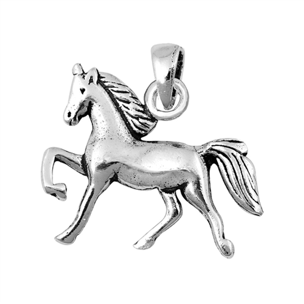 Sterling Silver Posed Horse Pendant Cute Animal Equestrian Stallion Charm 925