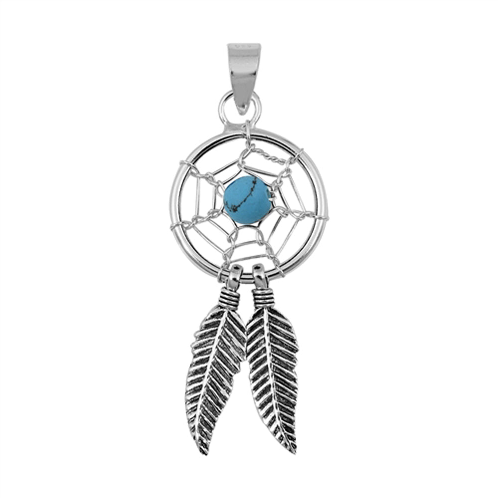 Sterling Silver Dream Catcher Pendant Weave Feather Native American Charm 925
