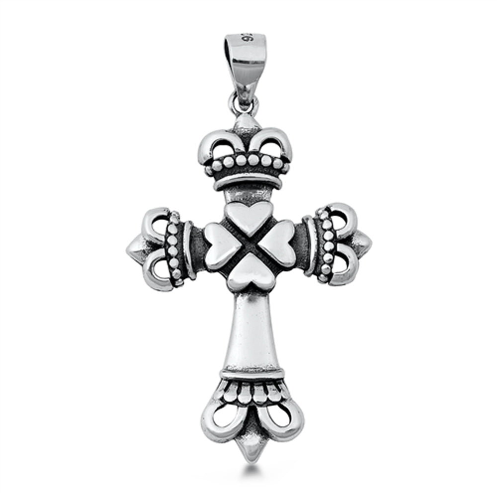 Sterling Silver Celtic Heart Cross Pendant Four Leaf Clover Love Crown Charm