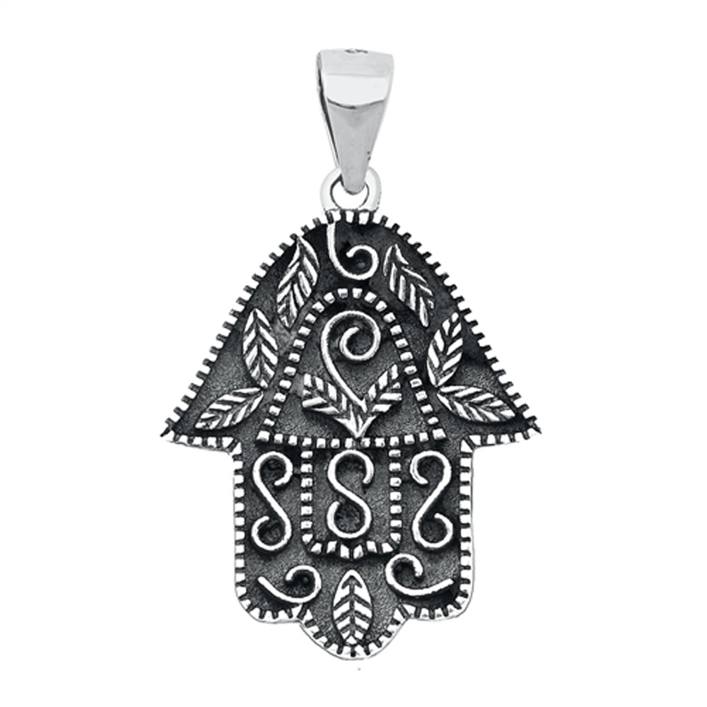 Sterling Silver Oxidized Ornate Hamsa Pendant Strong Hand of God Charm 925 New
