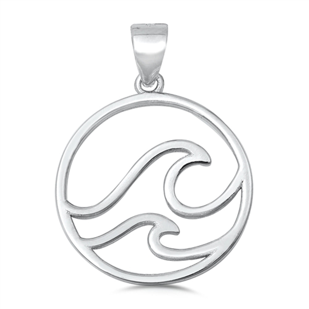 Sterling Silver Double Wave Pendant Open Loop Beach Water Cutout Charm 925 New