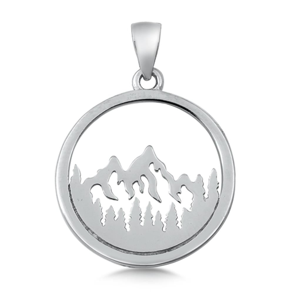 Sterling Silver Cutout Mountain Range Pendant Tree Forest Nature Open Hoop Charm