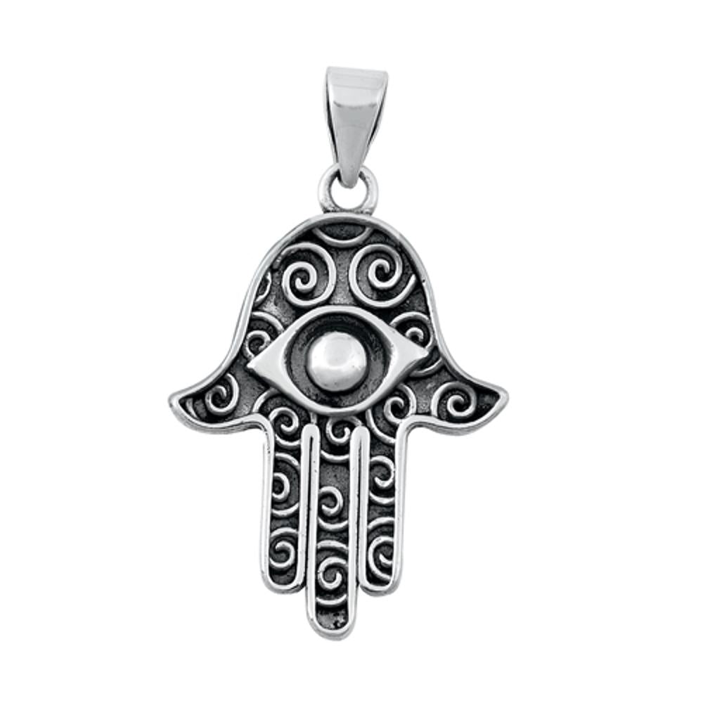 Sterling Silver All Seeing Eye Hamsa Pendant Hand of God Oxidized Charm 925 New