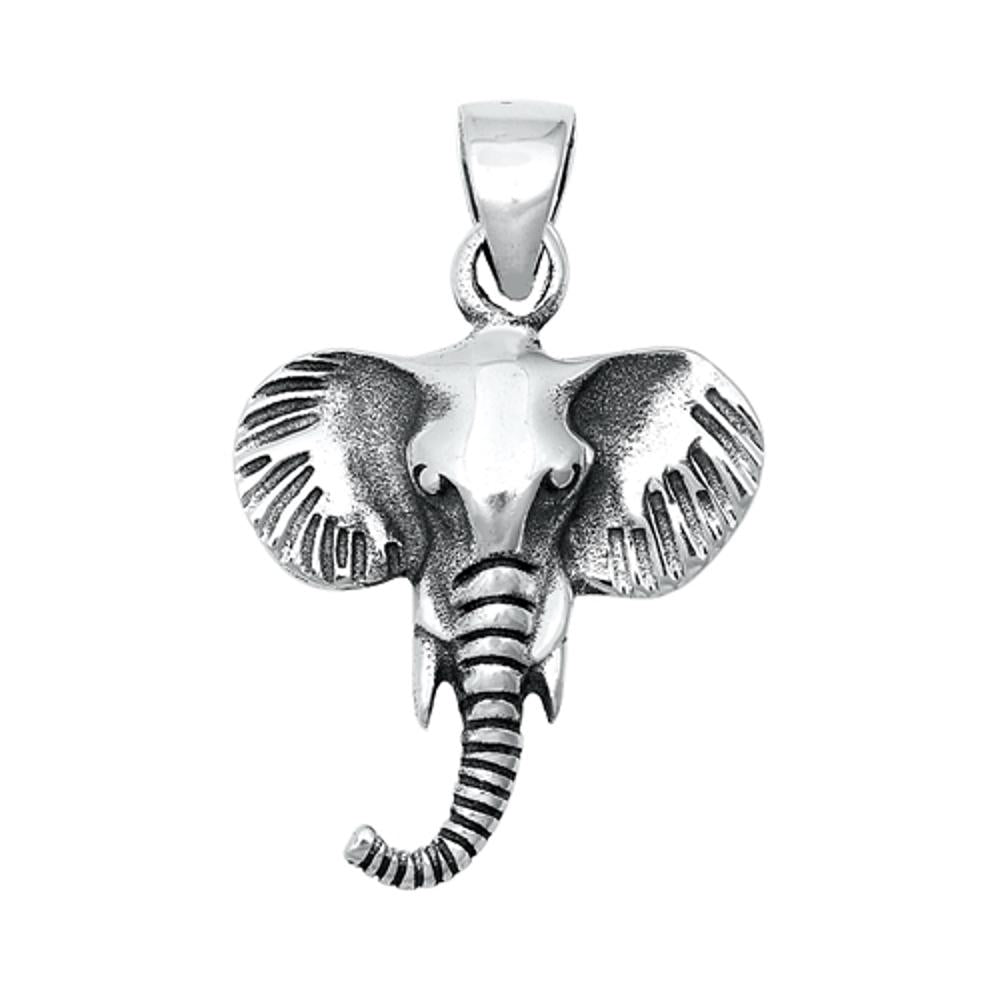 Sterling Silver Elephant Head Pendant Animal Nature Tusks Africa Charm 925 New