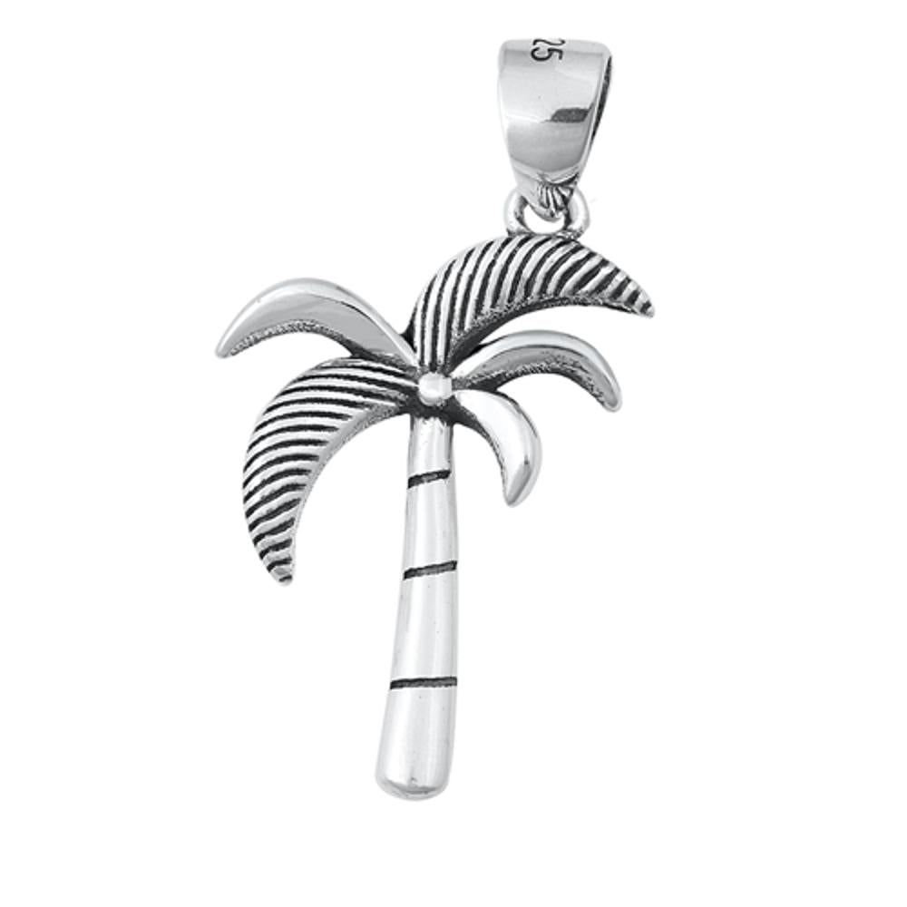 Sterling Silver Palm Tree Pendant Tropical Beach Nature Charm
