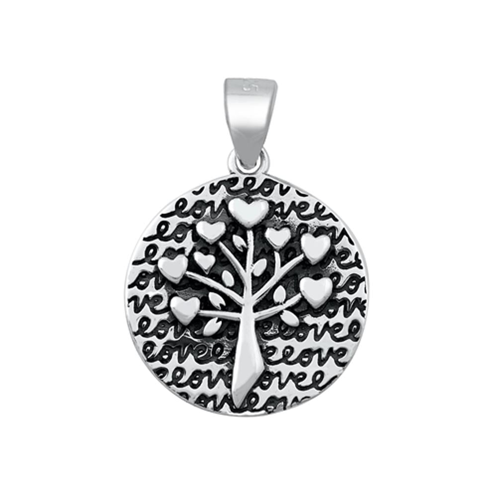 Sterling Silver Cute Love Tree Pendant Promise Heart Oxidized Detail Charm 925