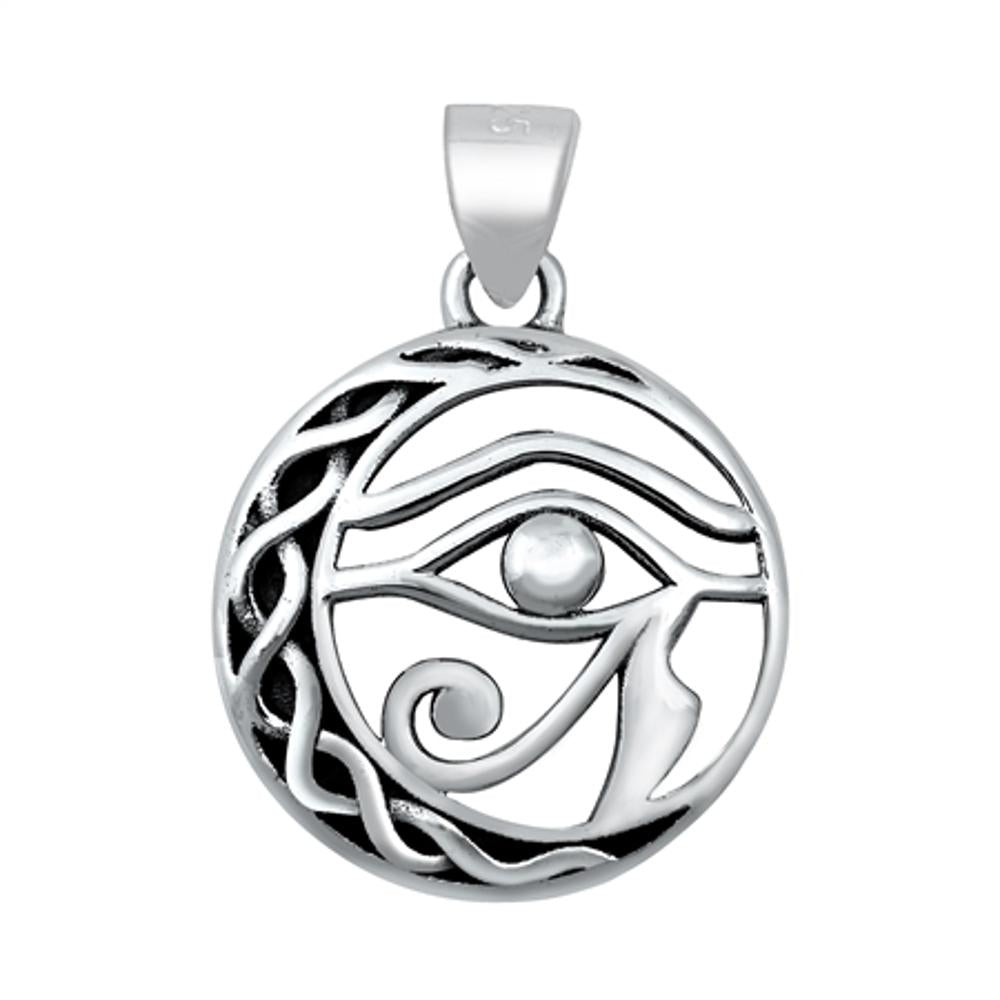 Sterling Silver All Seeing Eye of Horus Pendant Egyptian Braid Ornate Charm 925