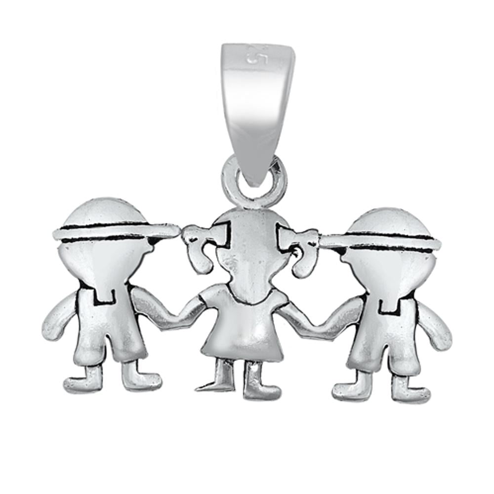 Sterling Silver Children Pendant Holding Hands Kids Mother Teacher Charm 925 New