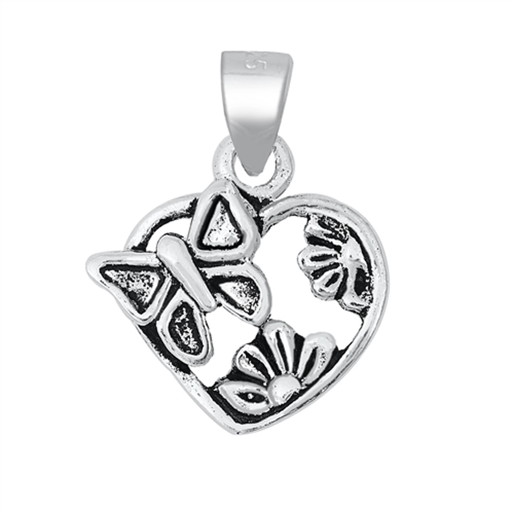 Sterling Silver Elegant Butterfly Pendant Flower Promise Heart Charm 925 New