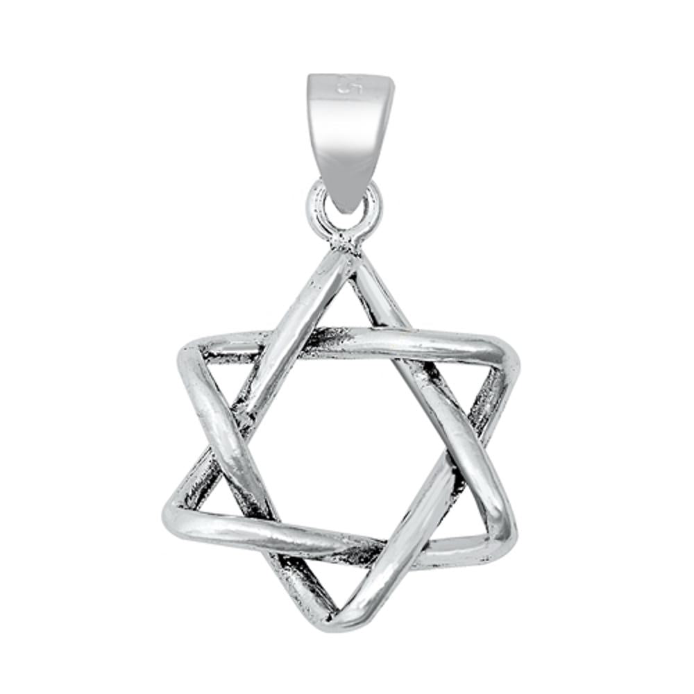 Sterling Silver Star of David Pendant Interwoven Traditional Jewish Charm 925