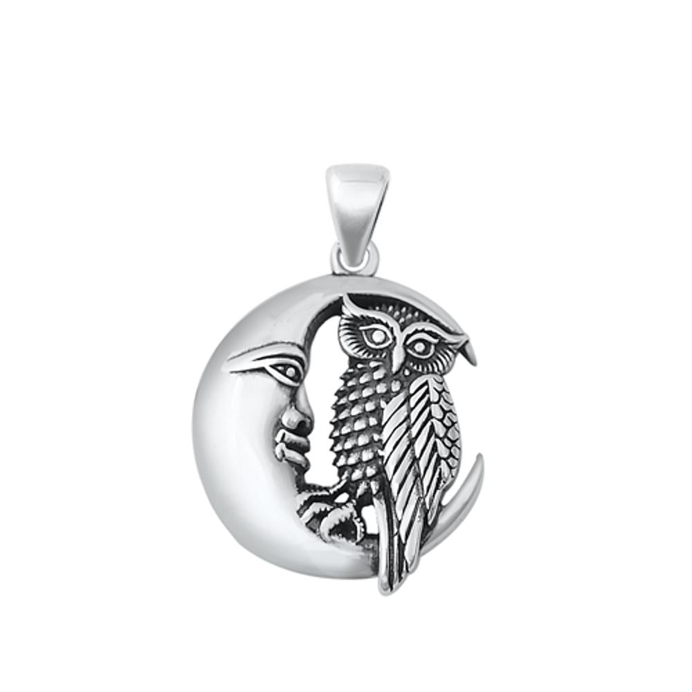 Sterling Silver Fashion Owl & Moon Pendant Cute Fantasy Mystical Charm 925 New