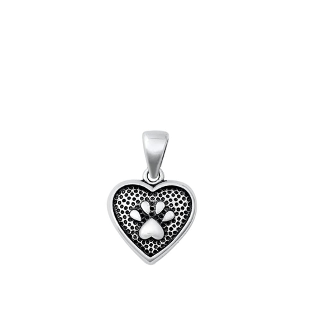 Sterling Silver Unique Pawprint Heart Pendant Cute Love Pet Animal Charm 925 New