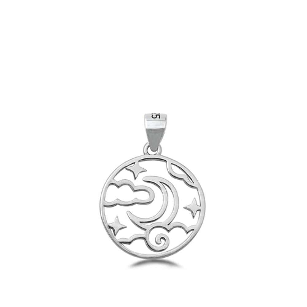 Sterling Sillver Outline Lightweight Open Pendant Moon Cloud Stars Band 925 New