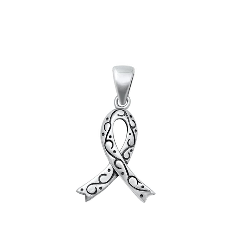 Sterling Silver Classic Cancer Ribbon Pendant High Polished Charm 925 New