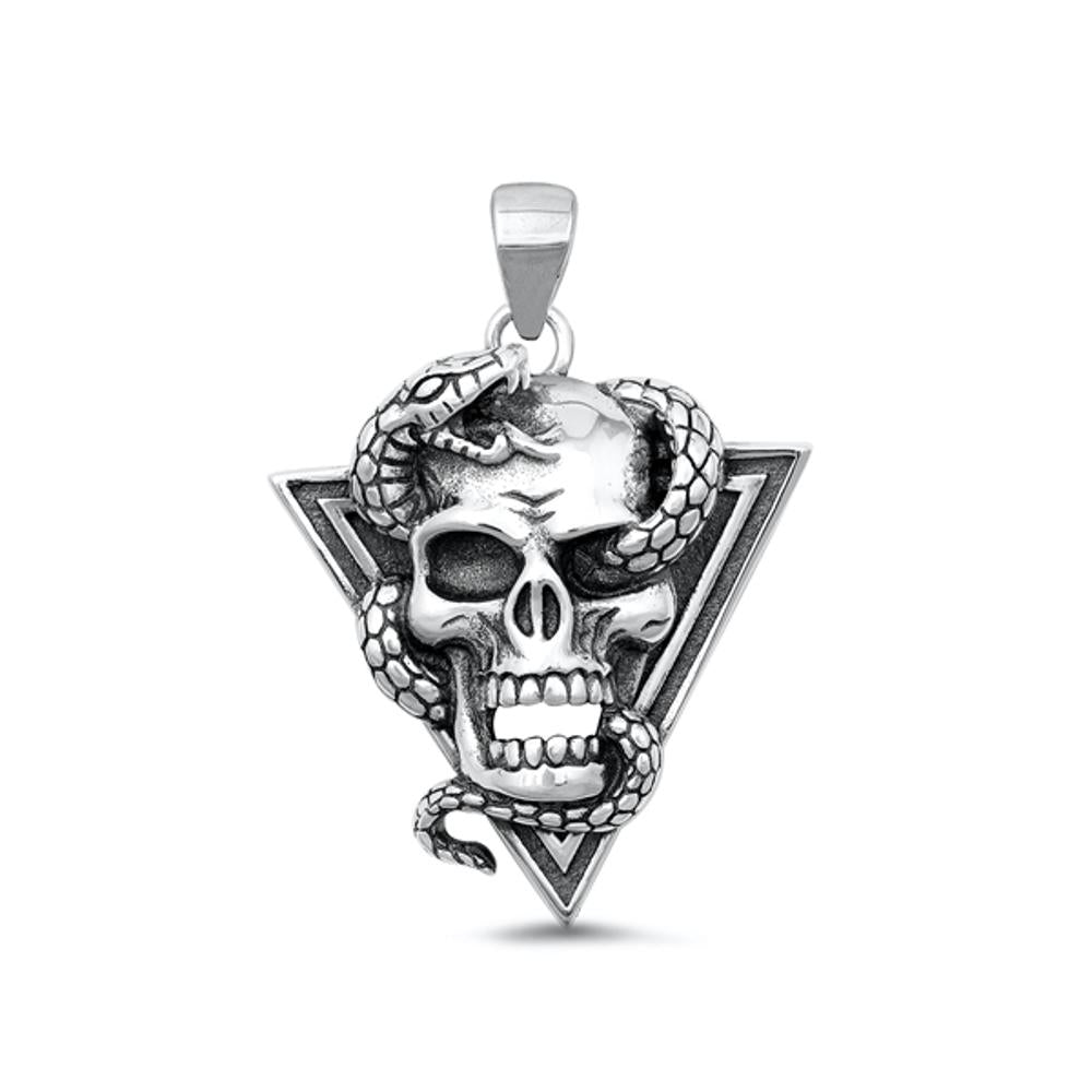 Sterling Silver Classic Skull & Snake Pendant Oxidized High Polish Charm 925 New