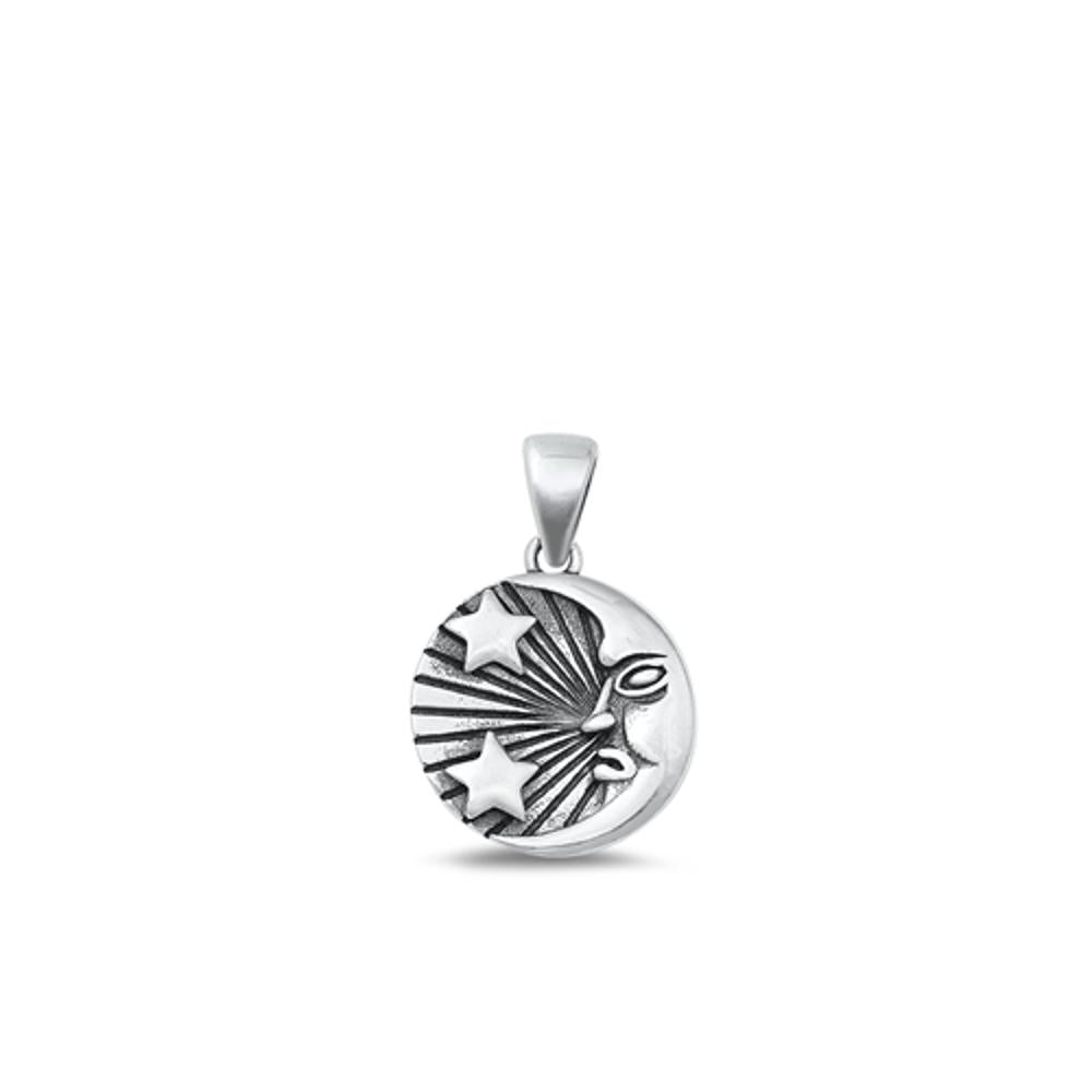 Sterling Silver Beautiful Moon & Stars Pendant High Polished Oxidized Charm 925
