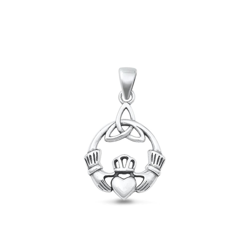 Sterling Silver Classic Celtic Claddagh Pendant High Polished Charm 925 New