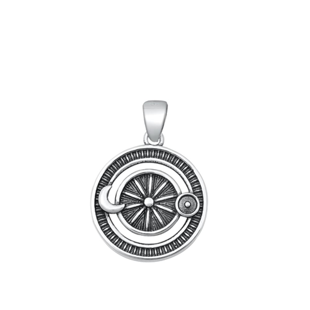 Sterling Silver Cute Astrology Wheel Pendant Moon Sun Medallion Charm 925 New