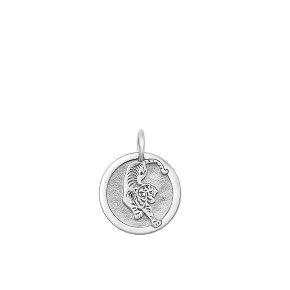 Sterling Silver Polished Chinese Zodiac Tiger Pendant Astrological Charm 925 New