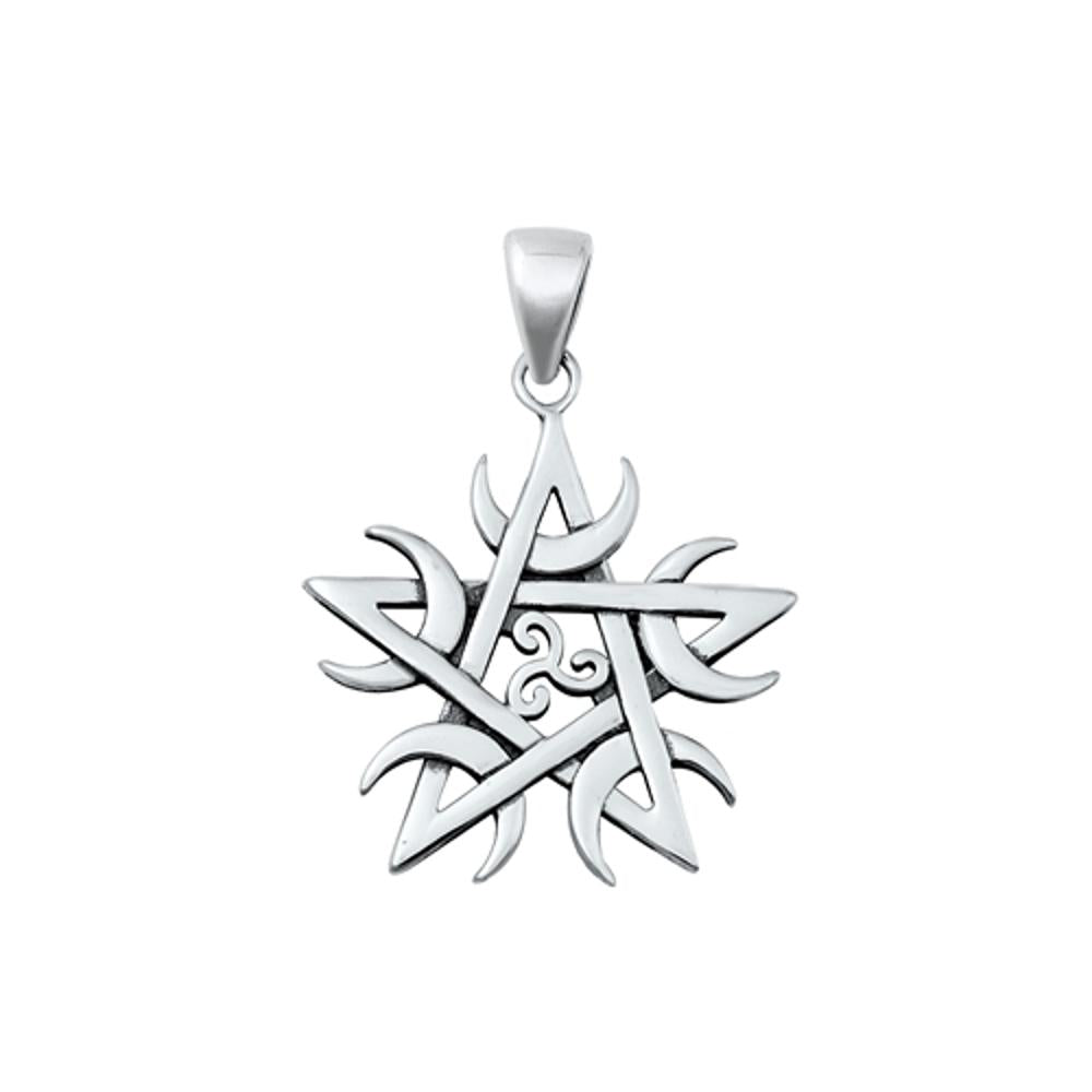 Sterling Silver Fashion Pentagram Moon Triskelion Pendant Celtic Charm .925 New