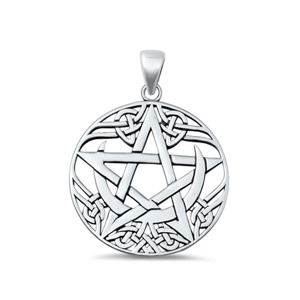 Sterling Silver Oxidized Celtic Pentagram Medallion Charm Pendant .925 New