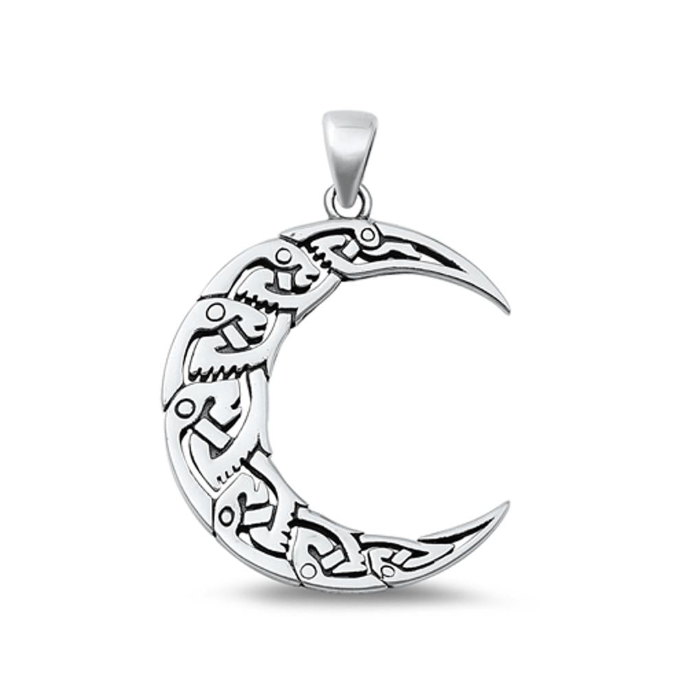 Sterling Silver Unique Crescent Moon Pendant High Polished Charm .925 New