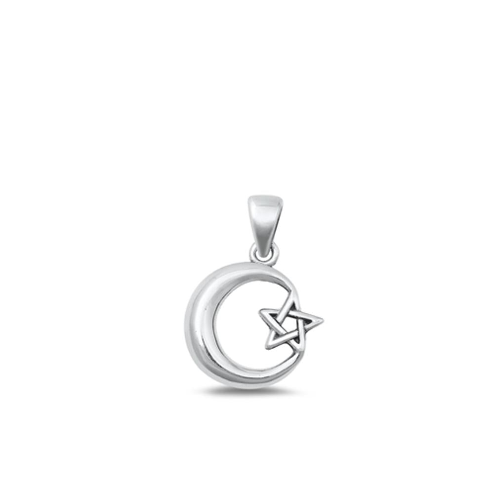 Sterling Silver Oxidized Crescent Moon & Star Charm Polished Pendant .925 New