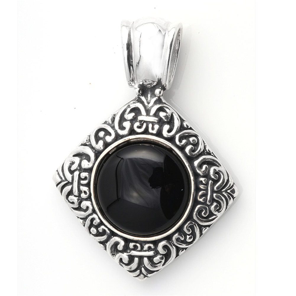 Sterling Silver Ornate Oxidized Medallion Pendant Black Simulated Onyx Charm