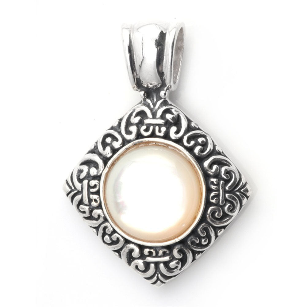 Vintage Medallion Pendant Simulated Mother of Pearl .925 Sterling Silver Charm