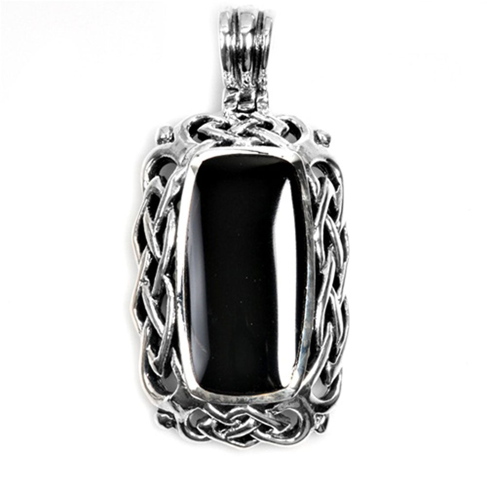 Sterling Silver Braided Elegant Rectangle Pendant Black Simulated Onyx Charm