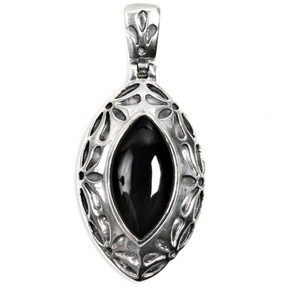 Cutout Floral Marquise Pendant Black Simulated Onyx .925 Sterling Silver Charm