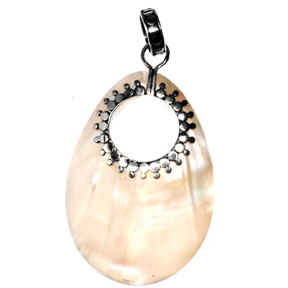 Sterling Silver Elegant Cutout Oval Pendant Simulated Mother of Pearl Charm