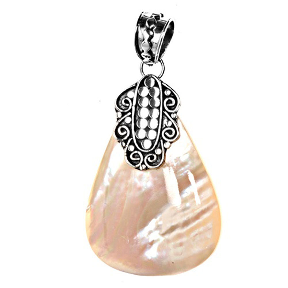 Sterling Silver Bali Style Teardrop Pendant Simulated Mother of Pearl Charm