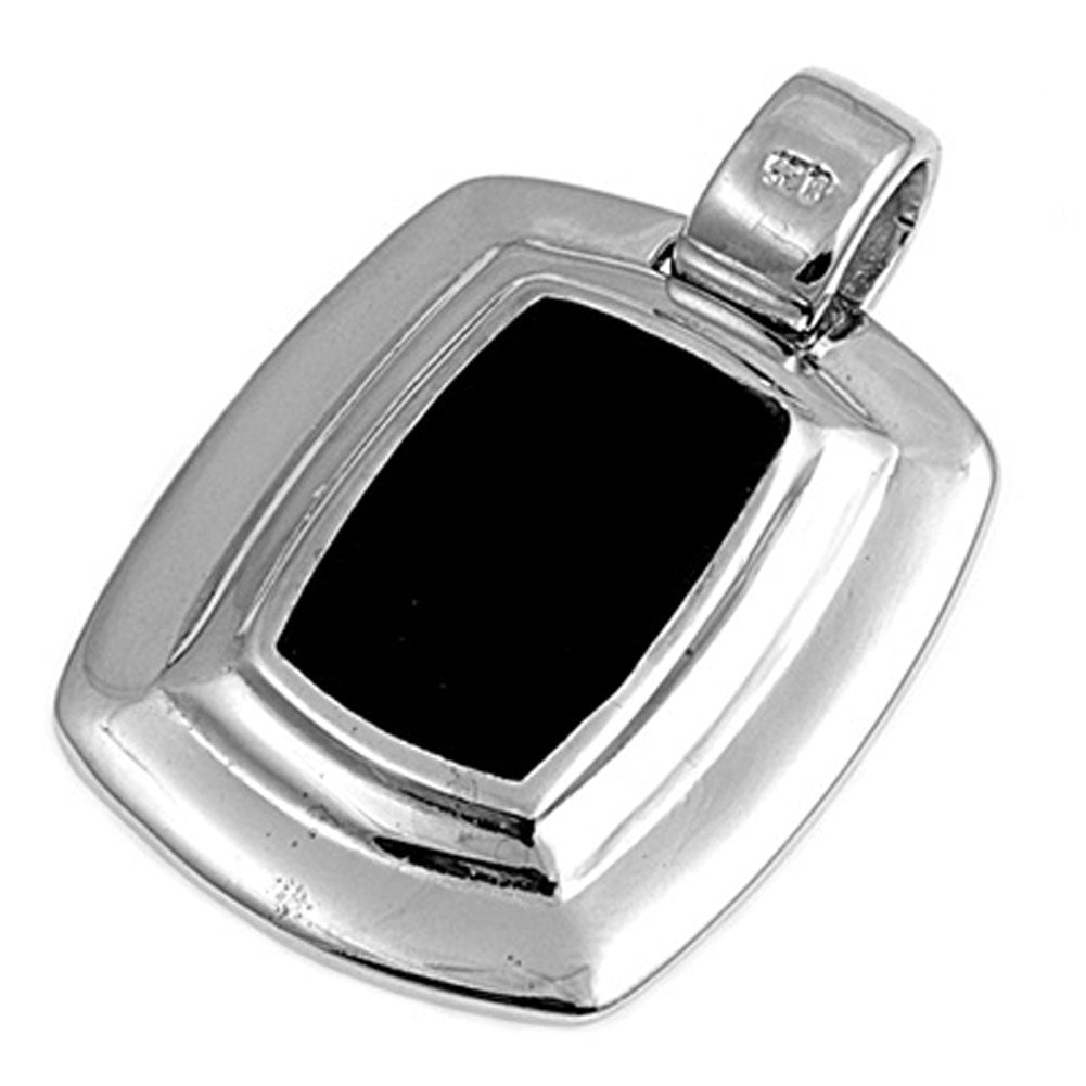 Sterling Silver Simple Rounded Rectangle Pendant Black Simulated Onyx Charm