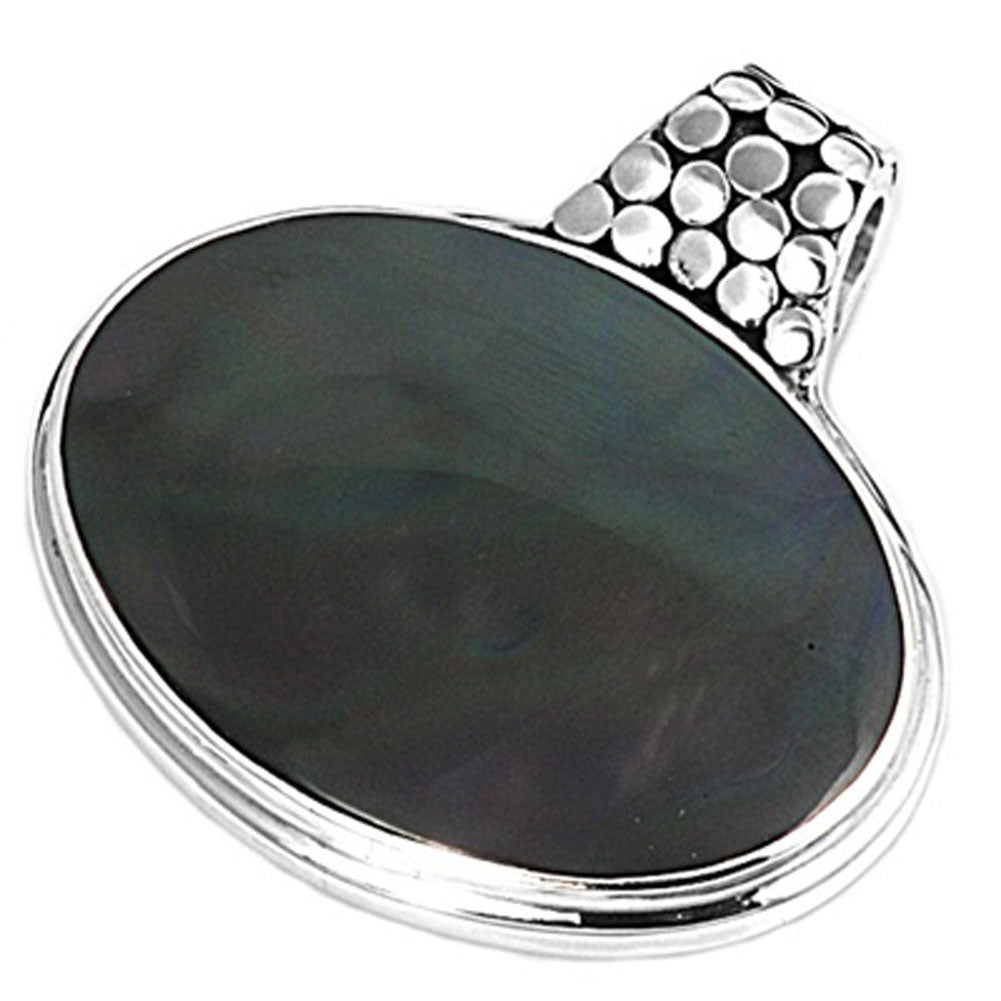 Bold High Polish Oval Pendant Simulated Abalone .925 Sterling Silver Charm