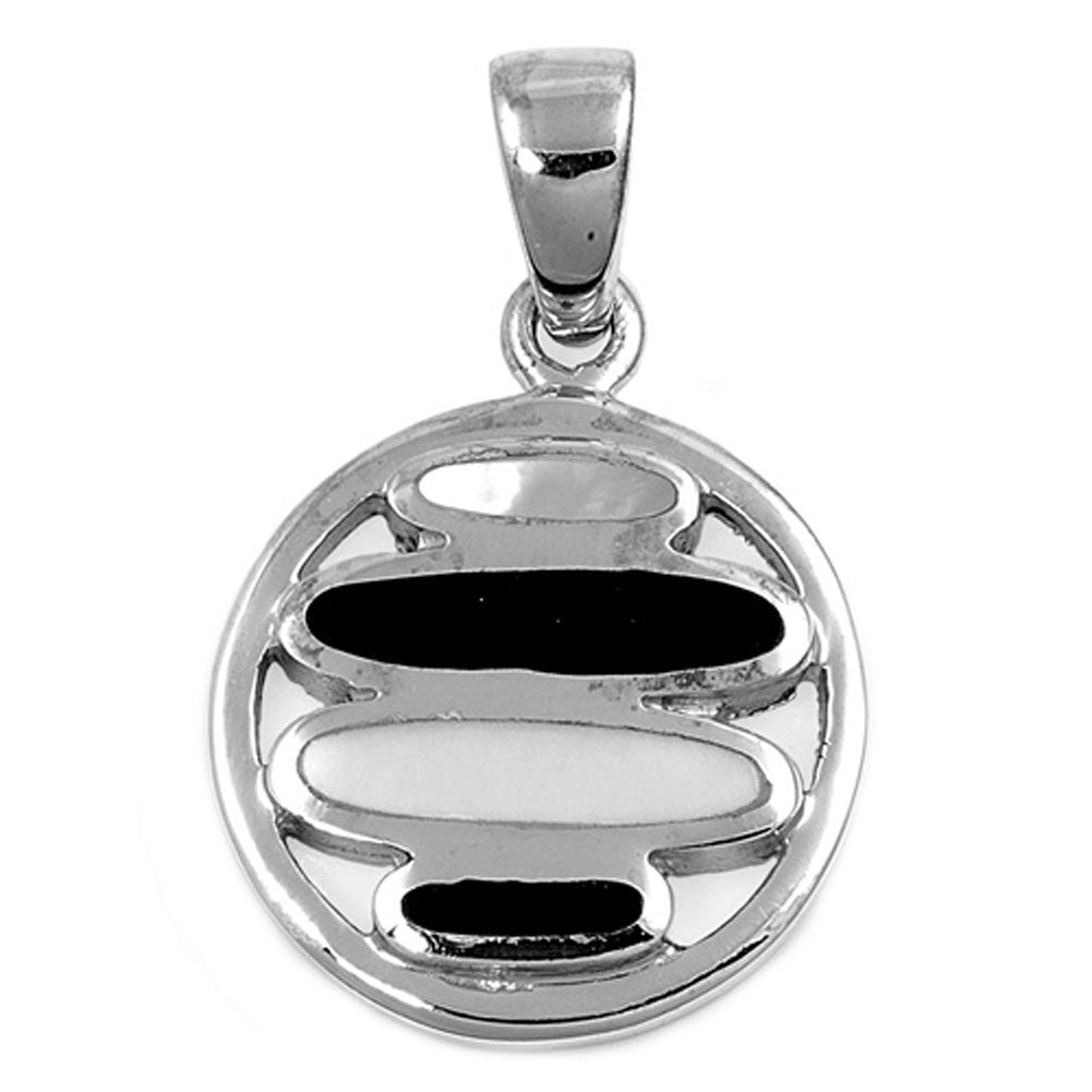 Sterling Silver Repeating Oval Hoop Pendant Simulated Mother of Pearl Charm