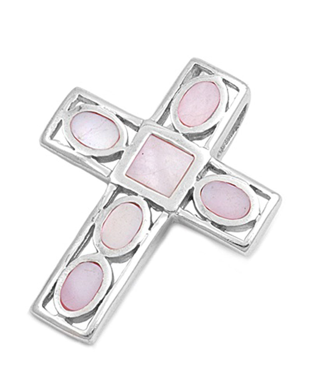 Cutout Oval Cross Pendant Simulated Mother of Pearl .925 Sterling Silver Charm
