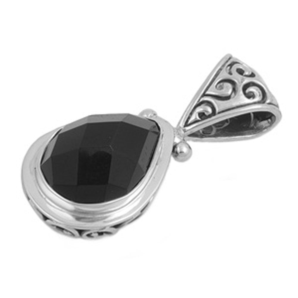 Polished Victorian Framed Teardrop Pendant .925 Sterling Silver Pear Charm