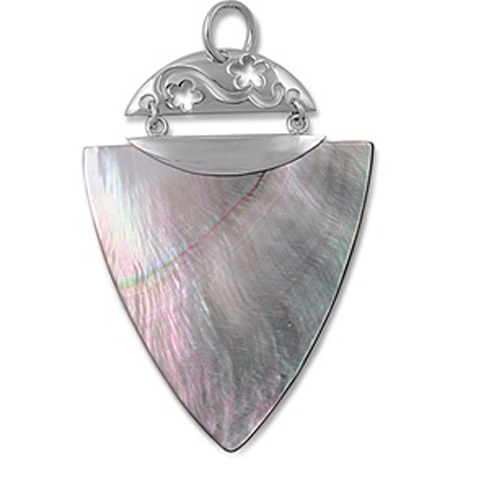Sterling Silver Flower Cutout Arrowhead Pendant Simulated Mother of Pearl Charm