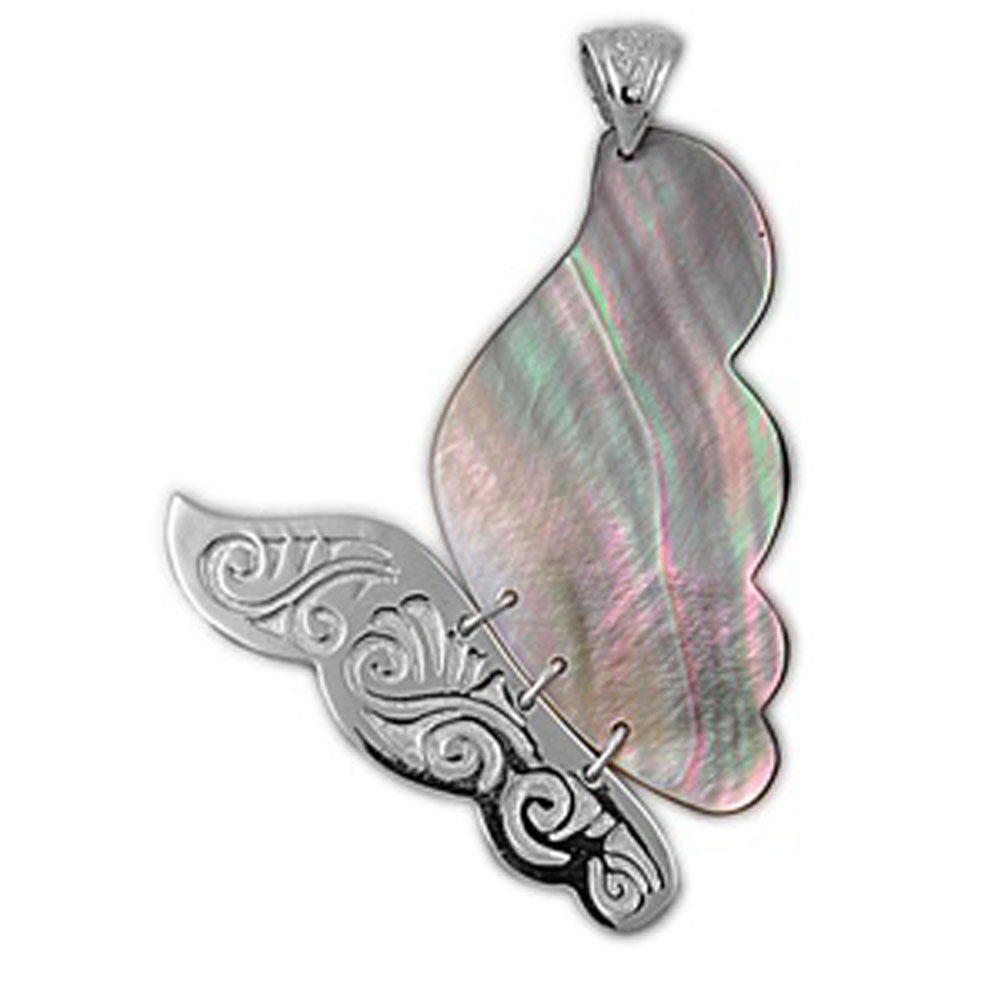 FIligree Butterfly Pendant Simulated Abalone .925 Sterling Silver Animal Charm
